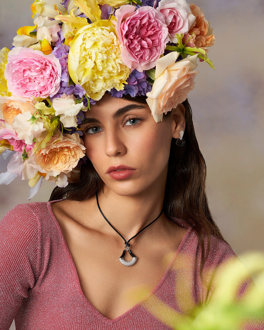 The smooth black onyx loop is elevated by a cascade of diamonds, set in 18K white gold. With their finesse and captivating details, they add just the right amount of drama to any look.