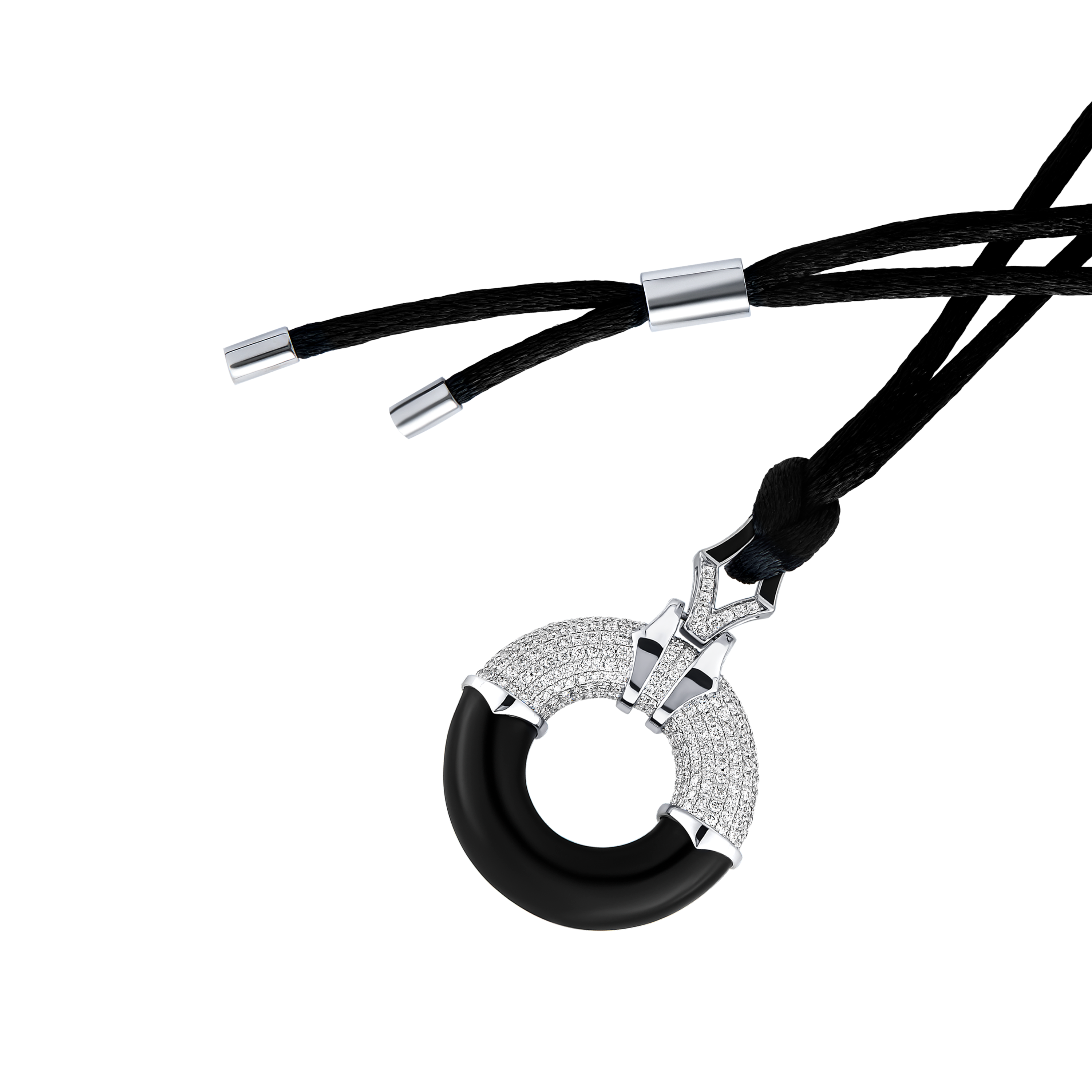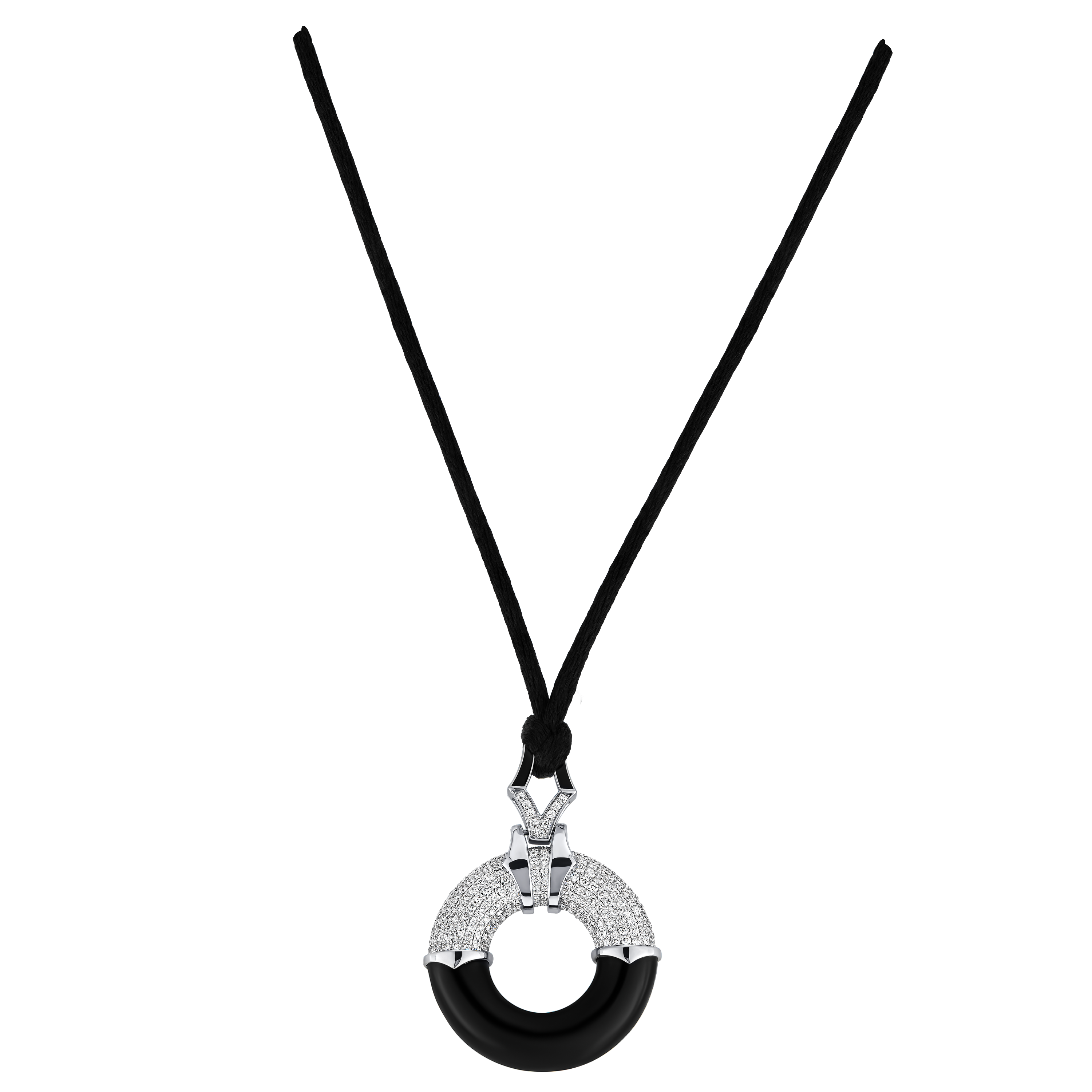 Inspired by the graceful rhythm of London’s Mayfair, the Mayfair Roundabout pendant is a celebration of elegance in motion. Sculpted from rich black onyx and framed in the luminous glow of 18K white gold, this piece is adorned with diamonds that sparkle like the city’s lights at twilight. Its flawless, unbroken circle embodies both the timeless continuity and dynamic poise of the iconic Mayfair district.